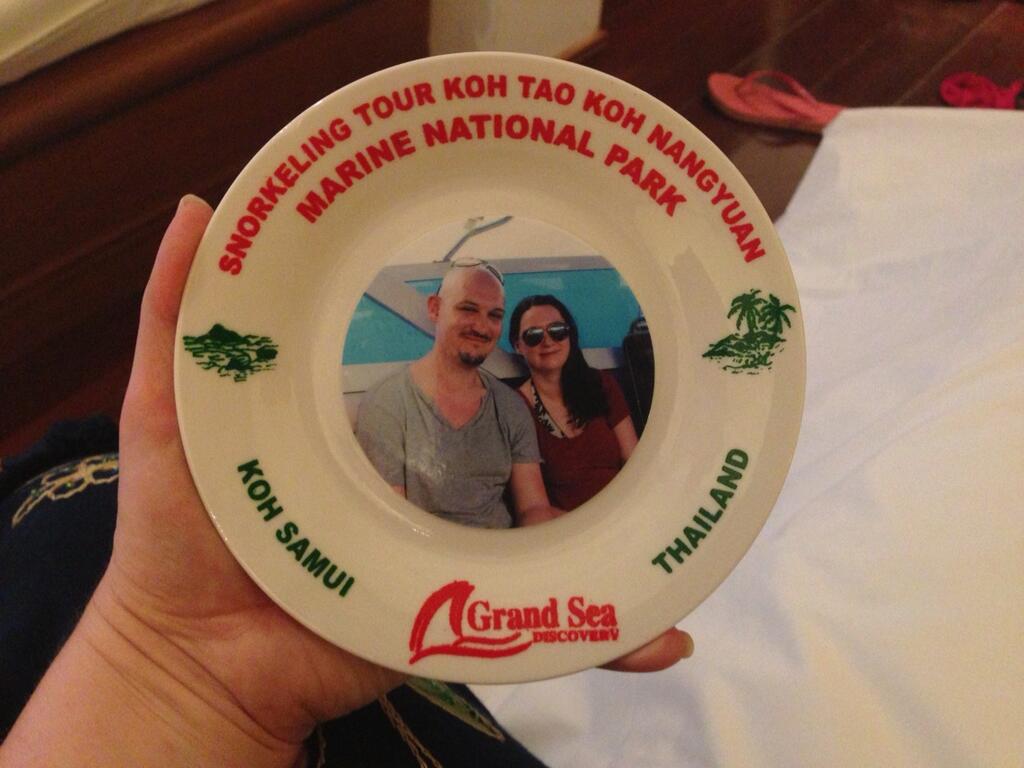 We had to explain to various people back at the dock why we had come back on the wrong boat, but we eventually got directed towards the right driver, bought our commemorative plate, and went and hid in the mini van – in case any yellow-wristband-wearing customers spotted us.